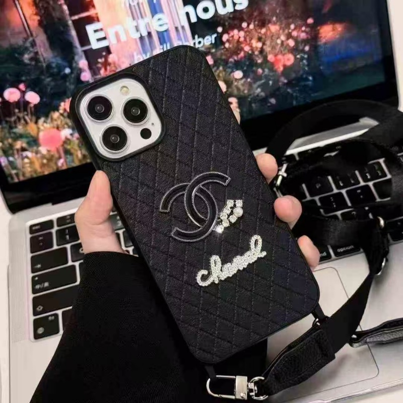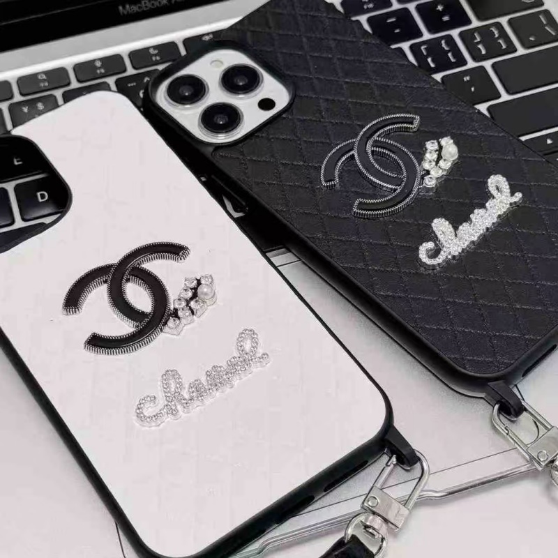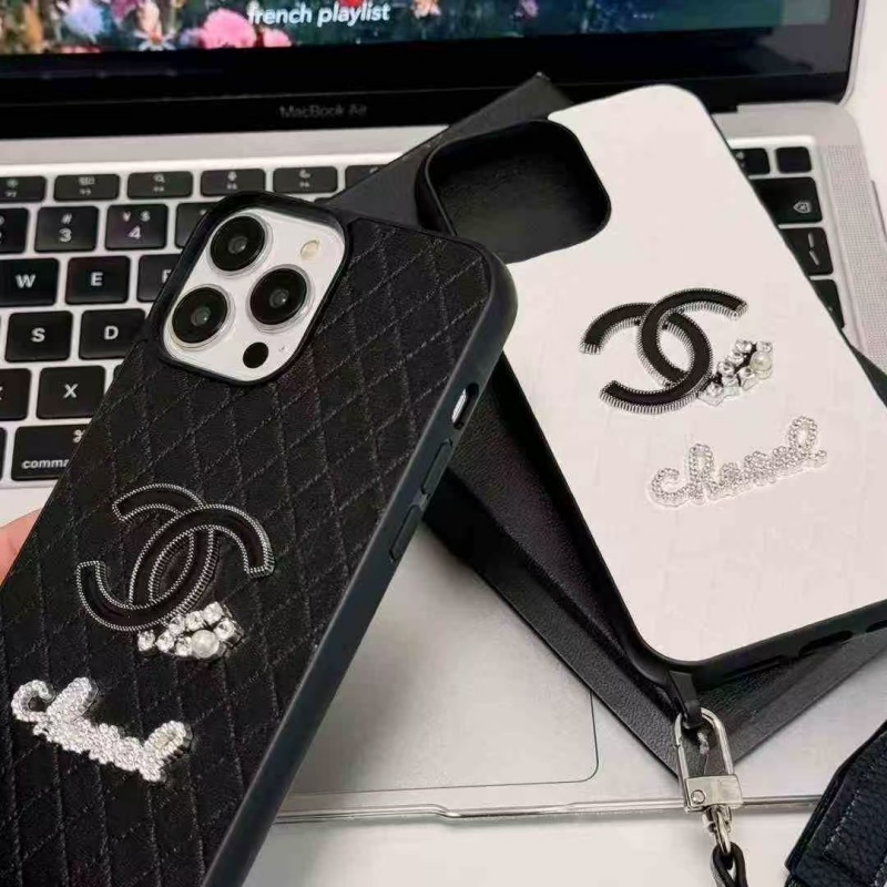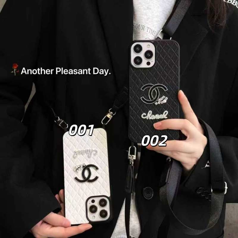 上品な大人女性から支持を集める、シャネル風のiPhoneケース。ショルダーストラップも搭載、斜めがけられて両手を解放できます!