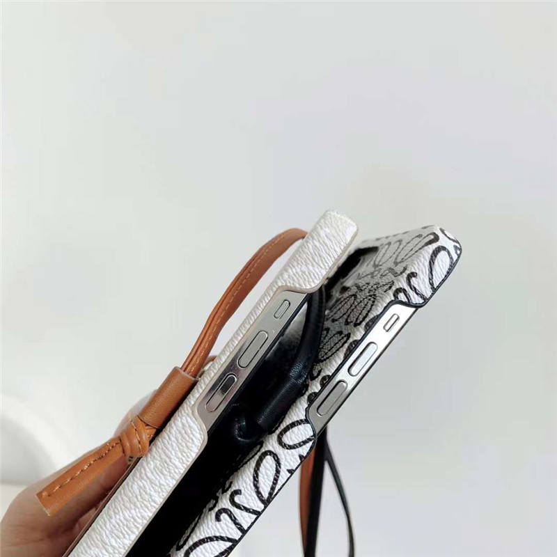 ロエベ背面収納型iPhoneケースです。人気のアナグラム柄のデザイン、可愛く優雅な雰囲気を感じさせてくれるアイテムです。長いレザーストラップ付き、肩がけ、斜めがけ2WAYでのご使用が可能です。ちょっとしたお出掛けはこれひとつで行けちゃいます。