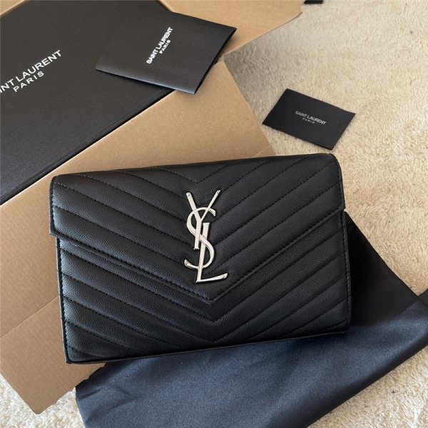 高品質なキルティングレザーに上品なYSLロゴをあしらい、エレガントで洗練された印象に◎